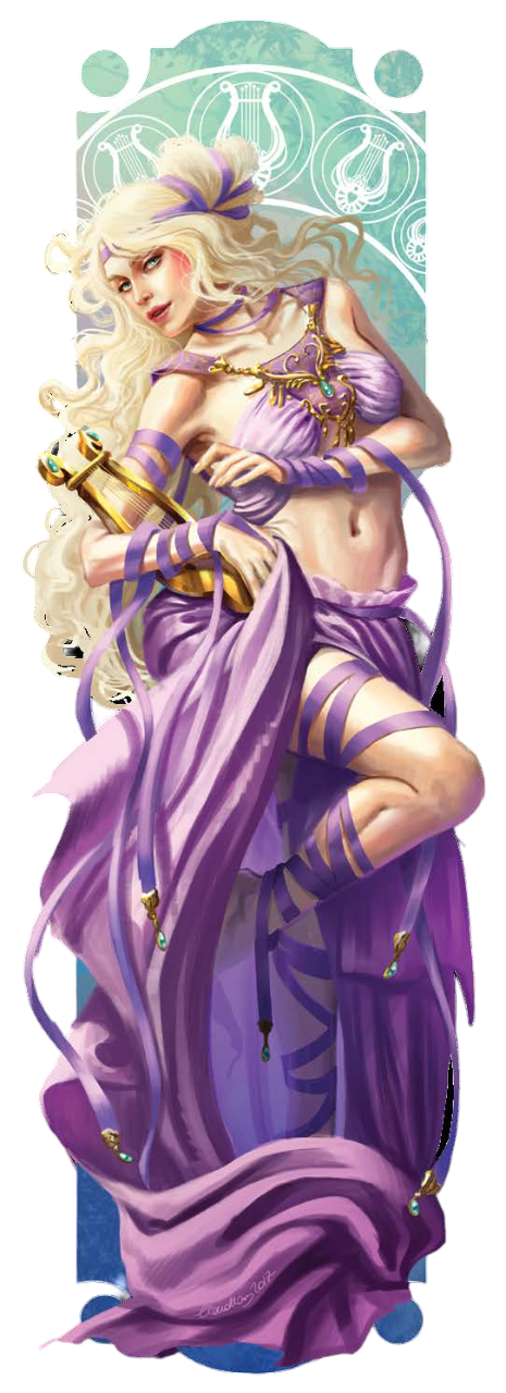 Aymara (ai-MAR-uh) é a deusa caótica e boa do amor, música, paixão, romance, casamento, amantes, músicos, artistas e bardos. Ela está associada a todos os prazeres estéticos, e seu nome é proferido primeiro por aqueles que veem as artes como a maior realização das raças mortais. Curiosamente, Aymara não trouxe música e dança para o mundo. Sua mãe fez isso, mas ninguém supera a habilidade de Aymara nas artes, e Zheenkeef nunca se interessou muito em vigiar os artistas. Aymara geralmente é representada como a mulher mais bonita que o artista pode imaginar e, portanto, é de qualquer raça que o artista prefira. Normalmente, é retratada com cabelos dourados, pois é lembrada como Aymara, a Dourada, mas ocasionalmente seu cabelo é escuro, e sua pele mantém o brilho dourado. Ela é muito alta e sempre vestida com a melhor vestimenta cortês. Muitos a retratam com uma lira debaixo do braço ou no colo, enquanto toca e canta para o deleite dos outros. Outras imagens a mostram cantando tão docemente que até as pedras choram. Instrumentos musicais de ouro ou prata representam a deusa, mas uma lira de prata como a que ela toca em muitos mitos tornou-se a mais comum. Membros de seu clero usam versões pequenas dos instrumentos que tocam, então um flautista pode usar uma pequena flauta de prata, ou um harpista, uma harpa dourada. Se precisarem de um símbolo, no entanto, sempre usarão a lira, o instrumento mais universalmente reconhecido de Aymara. Pássaros cantores (especialmente o rouxinol) estão associados à deusa. Ela também está intimamente ligada aos pégasos e monta um pégaso prateado, pois a única montaria apropriada para a mais bela dos deuses é a mais bela das bestas. O culto de Aymara é extremamente popular entre os elfos e, nos tempos antigos, pensava-se que ela era sua mãe e pai. Os elfos ainda às vezes se referem a ela como mãe e a mostram na forma graciosa de uma elfa. As outras raças a reverenciam, especialmente em casamentos, mas ela não é particularmente popular entre os anões, cujos artistas geralmente são adeptos de Korak, fazendo obras inteligentes e belas com as mãos dos artífices. Entre todos os deuses, Aymara é a única regularmente associada ao Shee, o último dos divinos que permanece na terra. Alguns acreditam que ela permanece em suas florestas, agora bosques encantados, e muitas dríades, náiades, fadas e duendes se deleitaram sob a lua com a Dama do Amor.